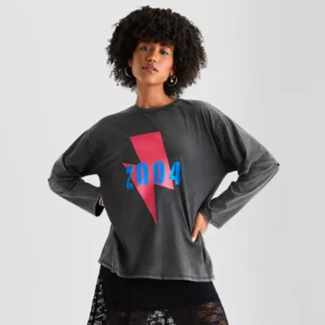 Arizona Womens Juniors Crew Neck Long Sleeve Regular Fit Graphic T-Shirt