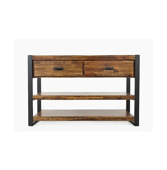 Jofran Loftworks Modern Industrial Distressed Acacia 50" Sofa Table with Drawers