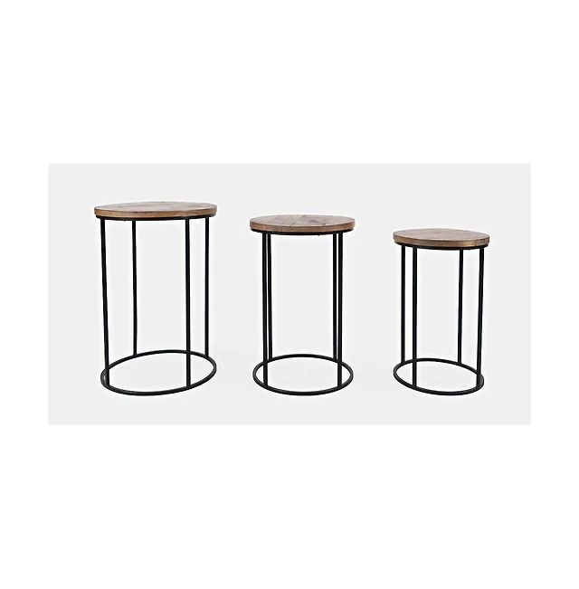 Jofran Warner Round Modern Rustic Solid Wood and Metal Nesting End Tables