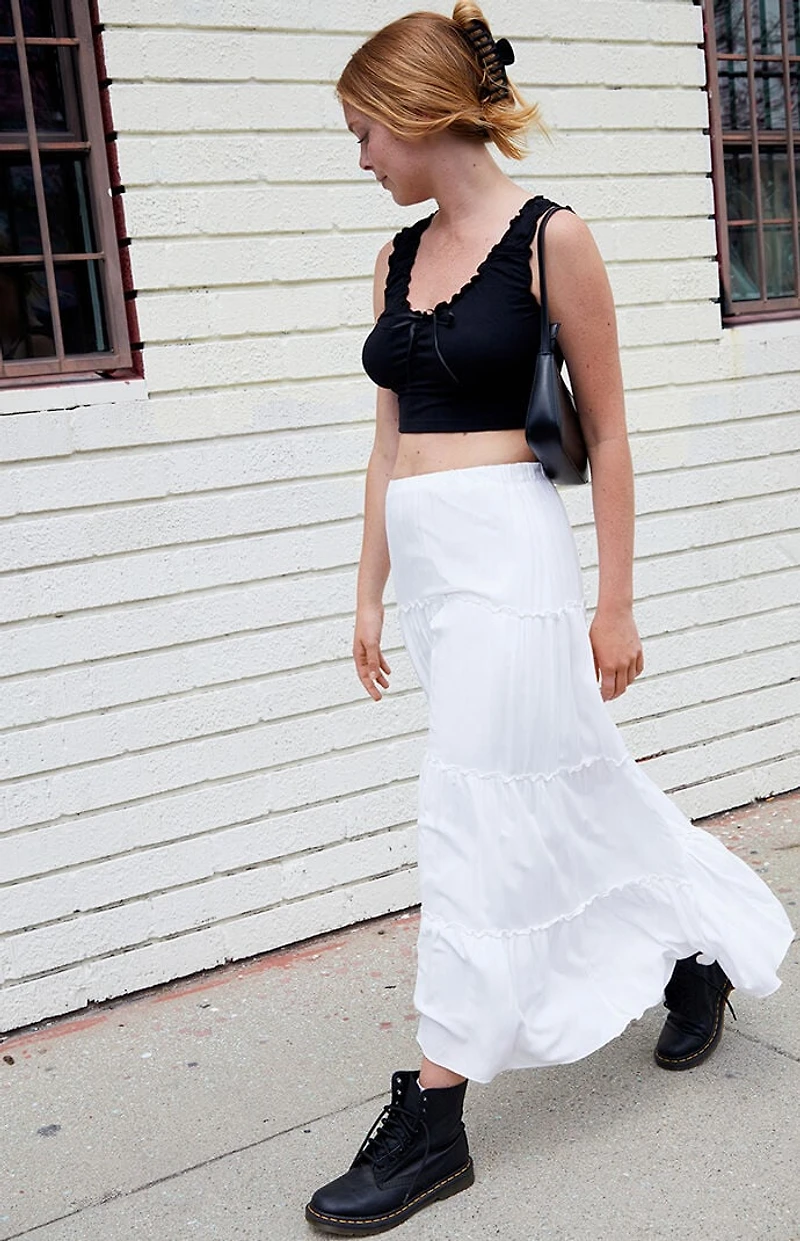 John Galt has got you covered for the warm weather with their new Black Blaire Tank Top. Made from a stretchy crinkle fabric, this tank is complete with a tie front detail, wide fixed straps, and a cropped fit.