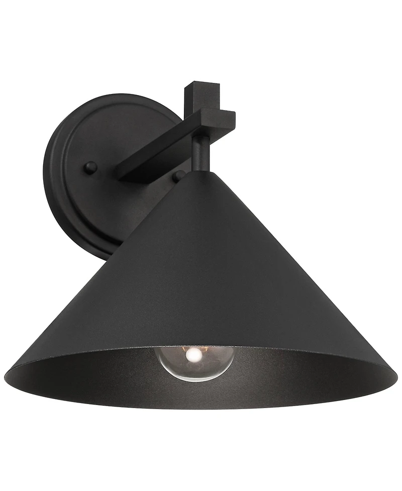 With minimalist grace, the Apex outdoor wall light from the John Timberland brand lights up your exterior spaces without adding to light pollution. Dark Sky friendly, this textured black finish fixture features a conical design keeping illumination directed at the ground. Install the Apex light around your exterior walls or front door for maximum elegance. Wet location rated for outdoor use.