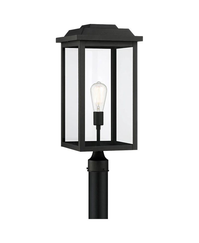 Update your home with this transitional outdoor post light from the Eastcrest collection by John Timberland. Featuring clean, straight lines and an unassuming rectangular silhouette, it fits into any style or setting. The frame is constructed from steel and painted over in a textured black finish, with clear glass panels supporting throughout. Perfect for a front yard or garage area.