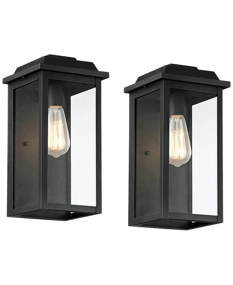 John Timberland Eastcrest Modern Outdoor Wall Light Fixtures Set of 2 Textured Black Metal 14" Clear Glass for Post Exterior Barn Deck House