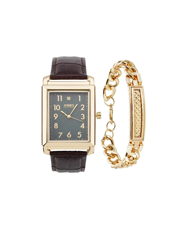 Jones New York Men's Analog Brown Polyurethane Strap Watch, 42mm and Bracelet Set