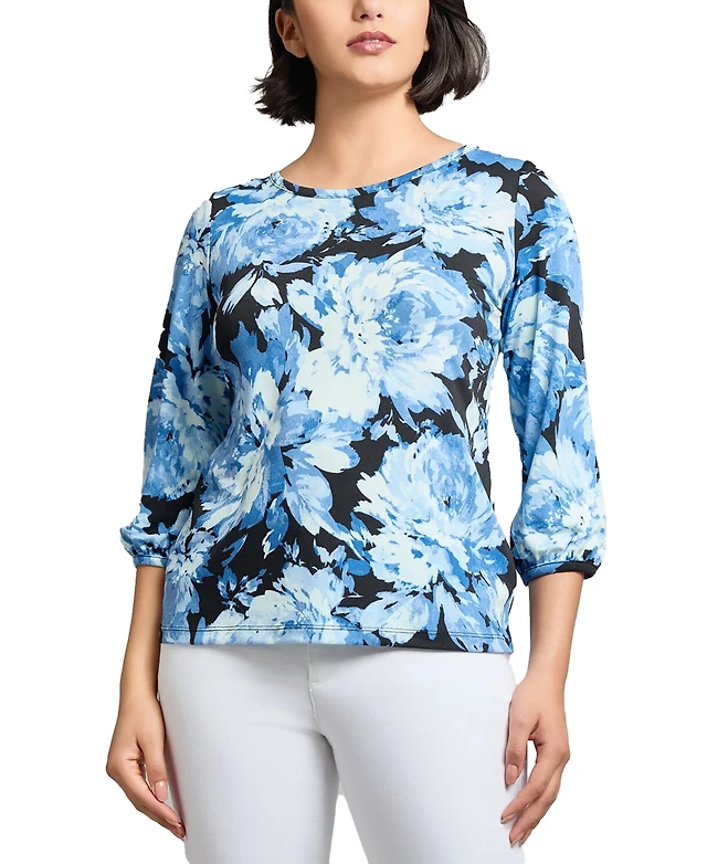 Jones New York Petite Floral-Print 3/4-Sleeve Blouse