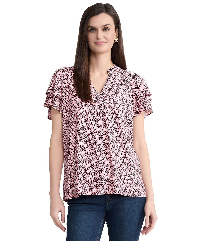 Effortless elegance defines this Jones New York top, featuring a flattering V-neck and soft flutter sleeves for a feminine touch. The pull-on style ensures comfort and ease, making it a versatile staple for both casual and dressed-up occasions.
