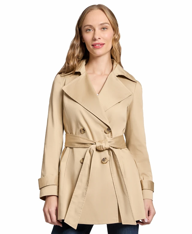 Jones New York Petite Notched-Lapel Belted Trench Coat