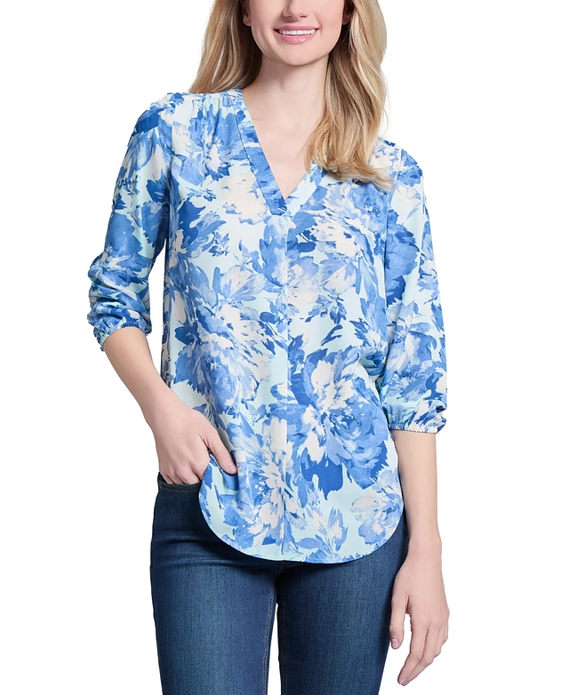 Jones New York Petite Printed 3/4-Sleeve Tunic Top