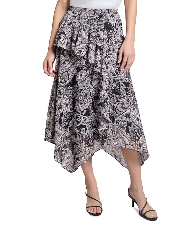 Jones New York Petite Ruffled Paisley-Print Pull-On Skirt