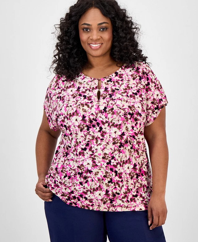 Jones New York Plus Size Printed 3/4-Sleeve Top