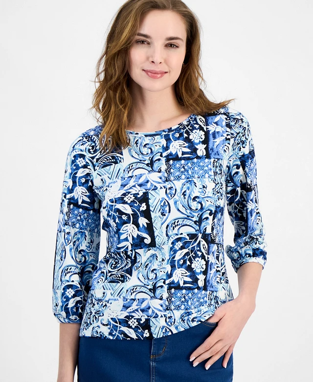Jones New York Women's Printed Moss Crepe 3/4-Sleeve Top