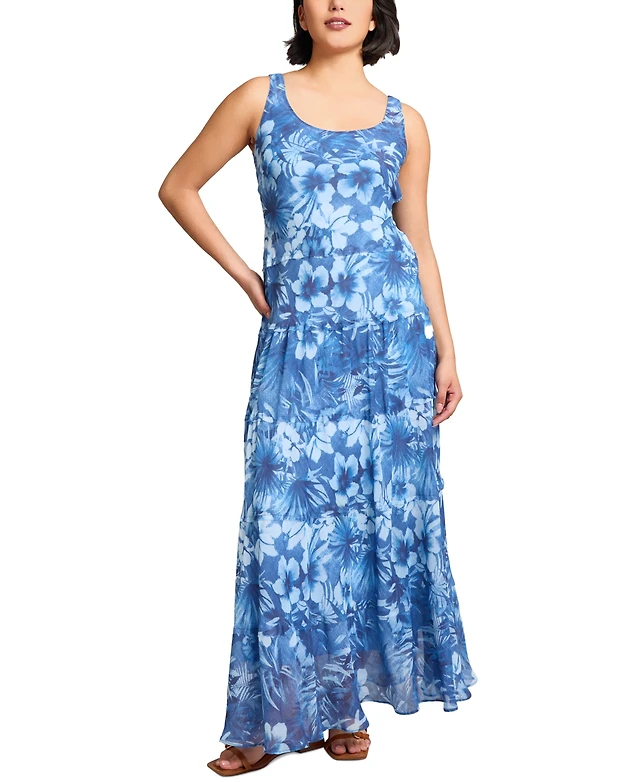 Jones New York Women's Printed Chiffon Scoop-Neck Maxi Dress