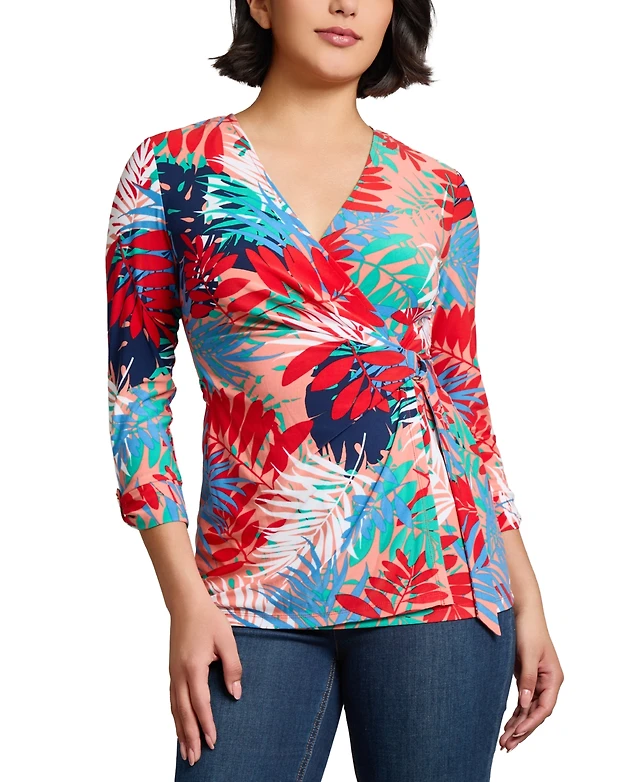 Jones New York Women's Printed Faux-Wrap Tie-Waist Top