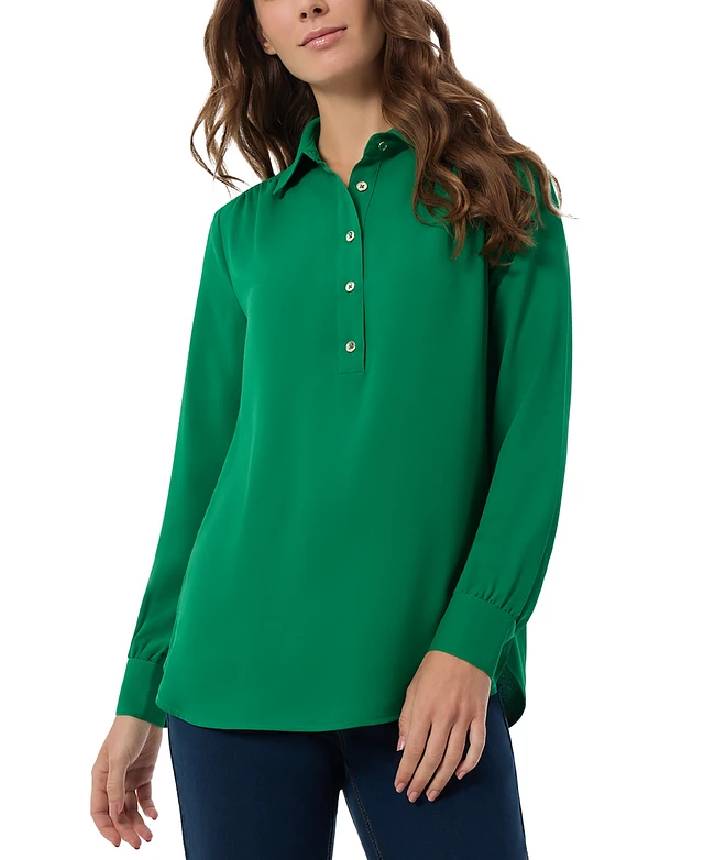 Jones New York Women's Side-Button Cuffed-Sleeve Top