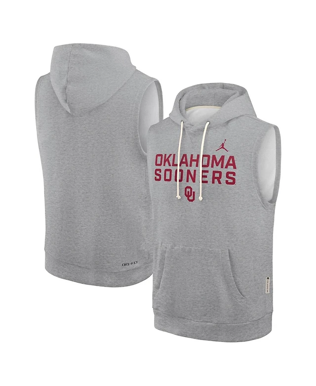 Jordan Men's Heather Gray Oklahoma Sooners 2025 Sideline Performance Sleeveless Pullover Hoodie