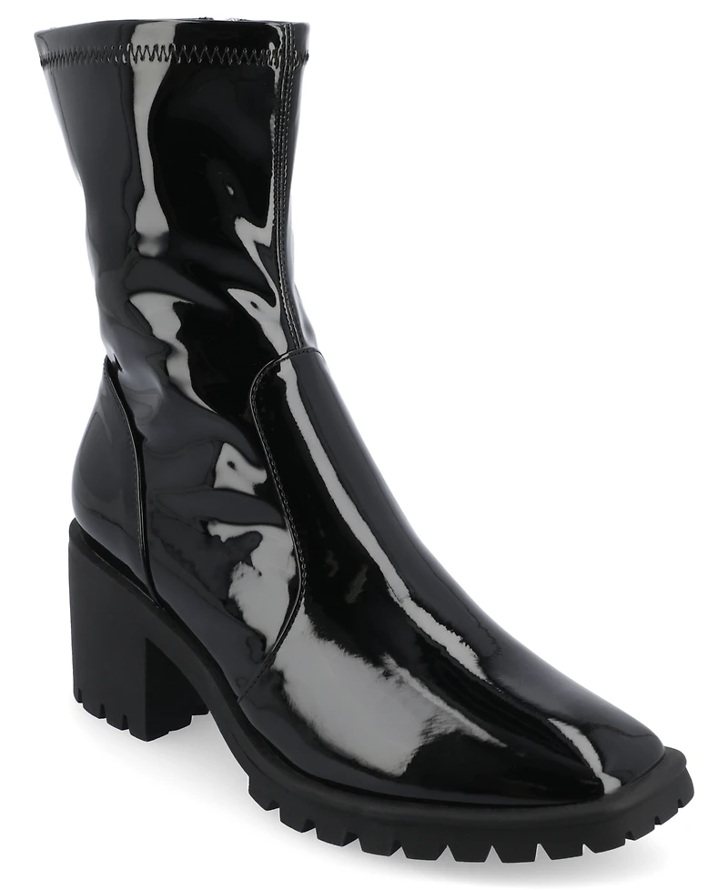 Meet Icelyn by Journee Collection, the trendy and bold ankle boot inspired by the 90s. The patent faux leather construction, square toe design, and 2.5"" block heel with a lug sole make Icelyn a perfect choice for anyone who wants to make a statement. With a lightweight and practical design, inside zipper entry, and 4mm Tru Comfort Foam insole, Icelyn by Journee Collection is the perfect combination of style and comfort.