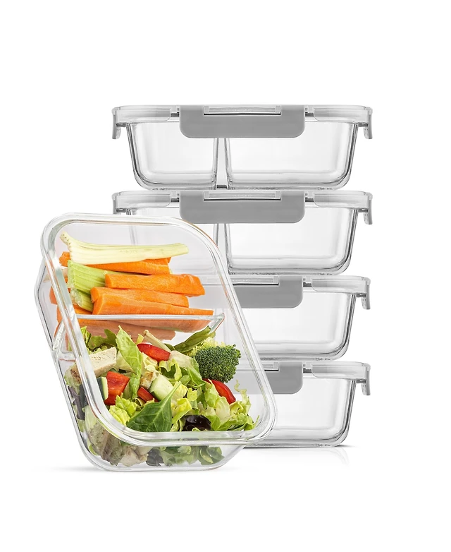 JoyJolt 3-Sectional Set of 5 Glass Food Storage Containers