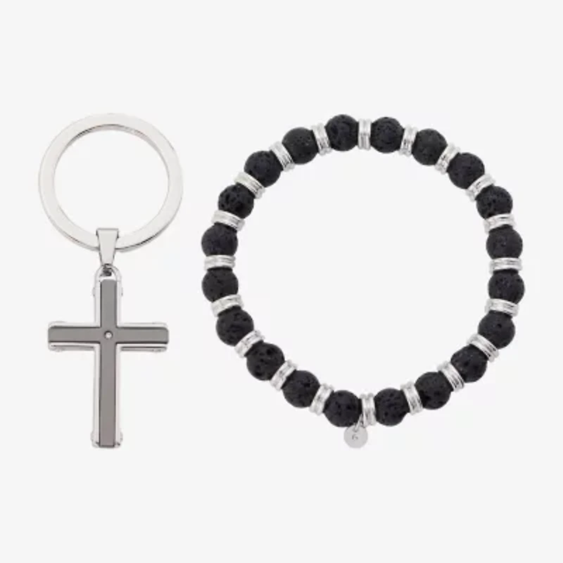 J.P. Army Lava Bead Bracelet & Keychain Mens Genuine Stainless Steel Cross 2-pc. Jewelry Set
