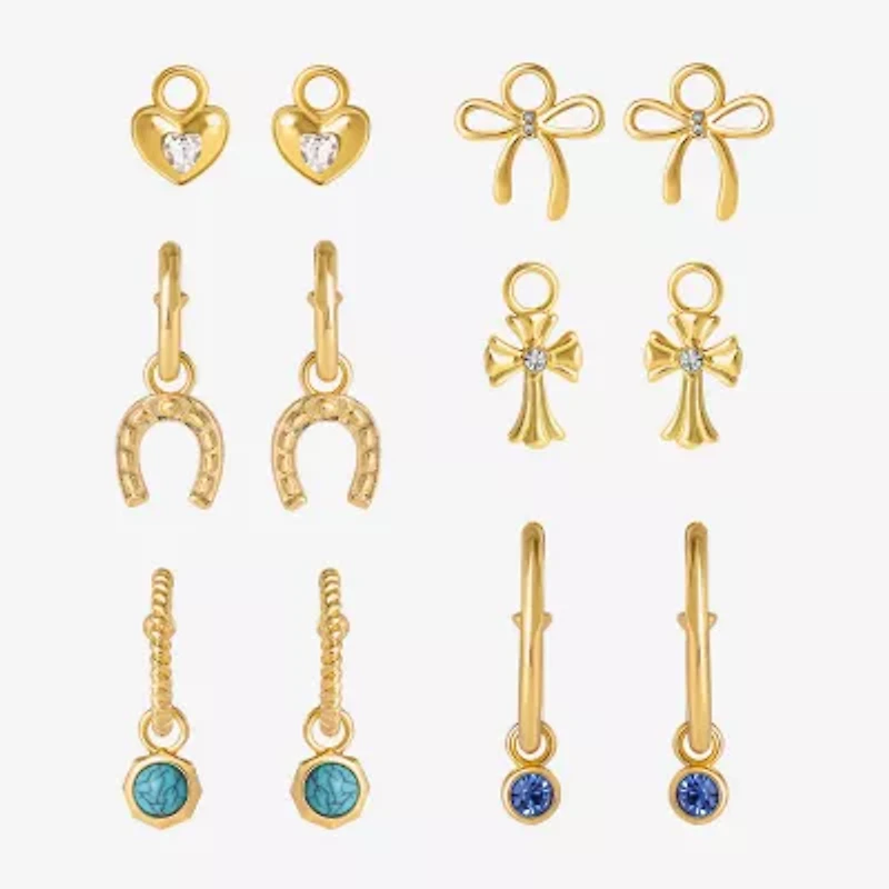 JS Jessica Simpson Gold Tone Interchangeable Charm Womens Multi Color Glass Bow Cross 3 Pair Earring Set