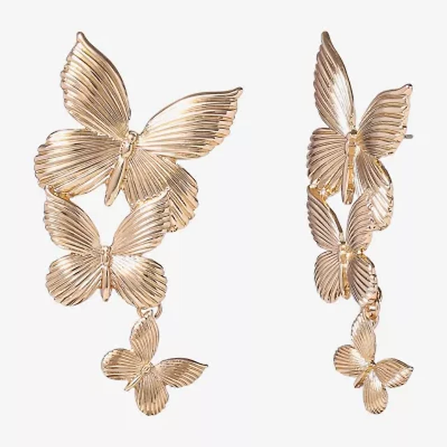 JS Jessica Simpson Gold Tone Womens Butterfly Drop Earrings