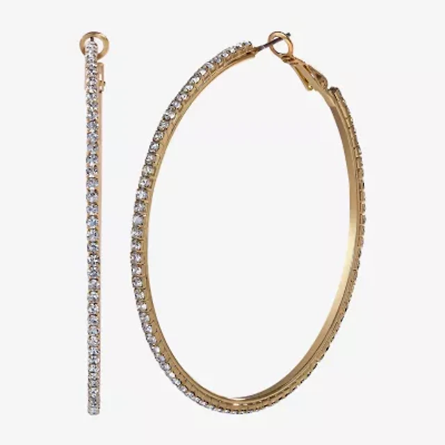 JS Jessica Simpson Gold Tone Womens Crystal 50.4mm Hoop Earrings