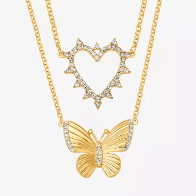 JS Jessica Simpson Gold Tone Womens Glass Butterfly Heart 2-pc. Necklace Set