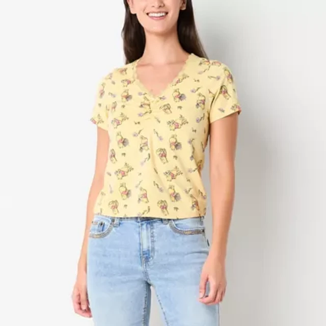 Juniors Baby Tee Womens V Neck Short Sleeve Winnie The Pooh Graphic T-Shirt