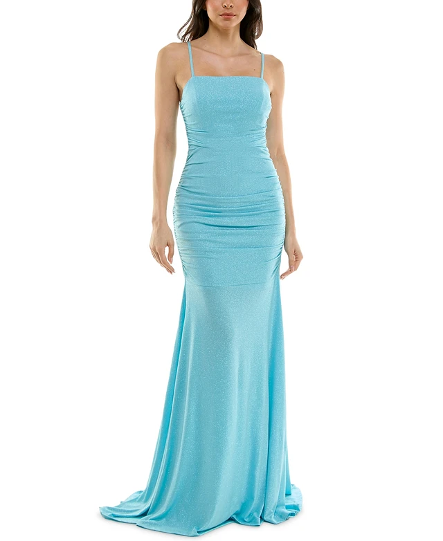 Juniors' Side-Ruched Lace-Up-Back Glitter Gown, Created for Macy's