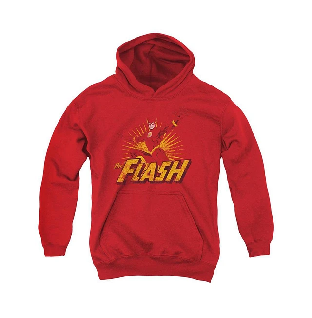 Justice League Boys of America Youth Flash Rough Distress Pull Over Hoodie / Hooded Sweatshirt