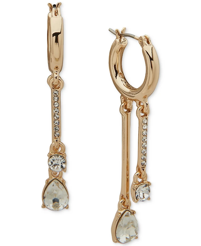 Karl Lagerfeld Paris Gold-Tone Mixed Crystal Shaky Charm Hoop Earrings