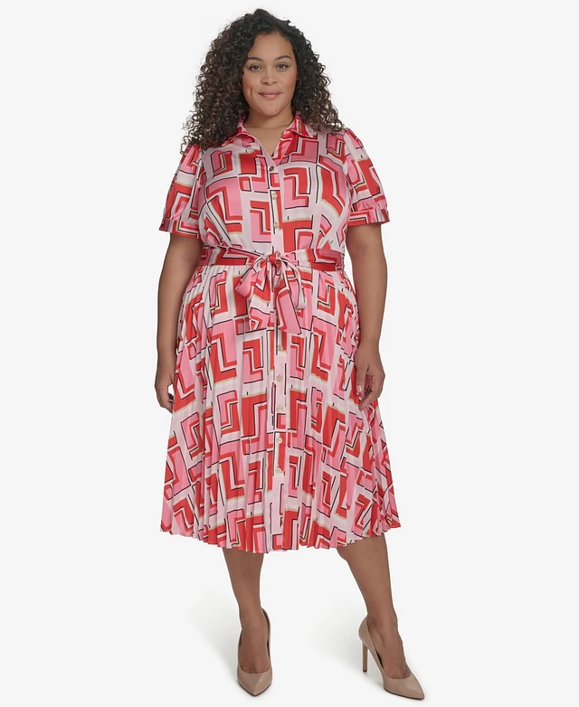 Karl Lagerfeld Paris Plus Geo-Print A-Line Dress, Exclusively at Macy's