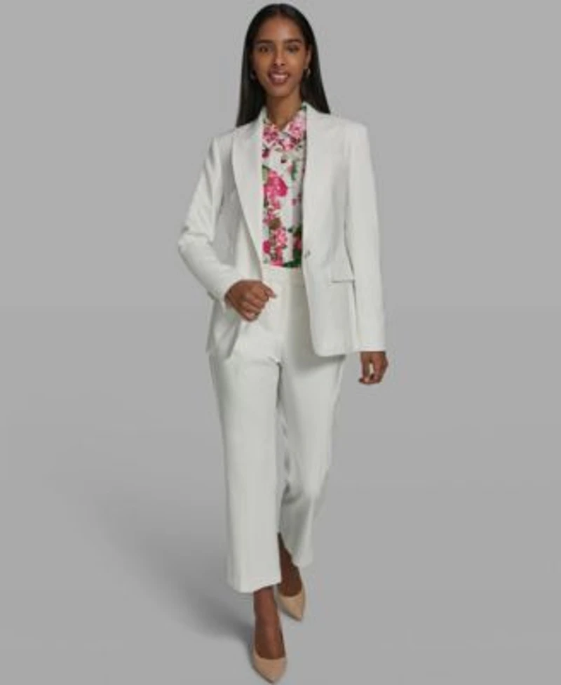 Karl Lagerfeld Paris Womens Collared Woven Blazer Short Sleeve Collared Blouse Woven Ankle Pants