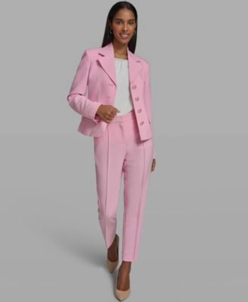 Karl Lagerfeld Paris Womens Cropped Collared Woven Blazer Crewneck Knit Top Straight Ankle Pants