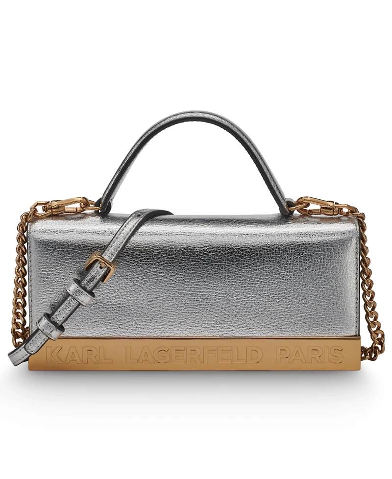Keep your essentials organized in this Karl Lagerfeld Paris wallet, featuring six interior card slots, a central slip pocket, and an extra compartment on the flap. Complete with a top handle and a versatile crossbody strap, it combines practicality with sophisticated style.