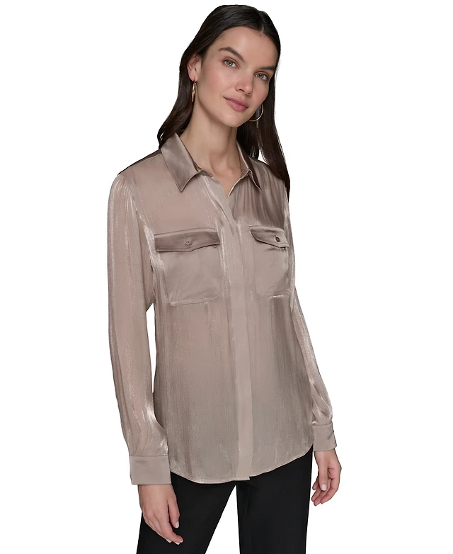 Karl Lagerfeld Paris Women's Blouson-Sleeve Button-Front Blouse
