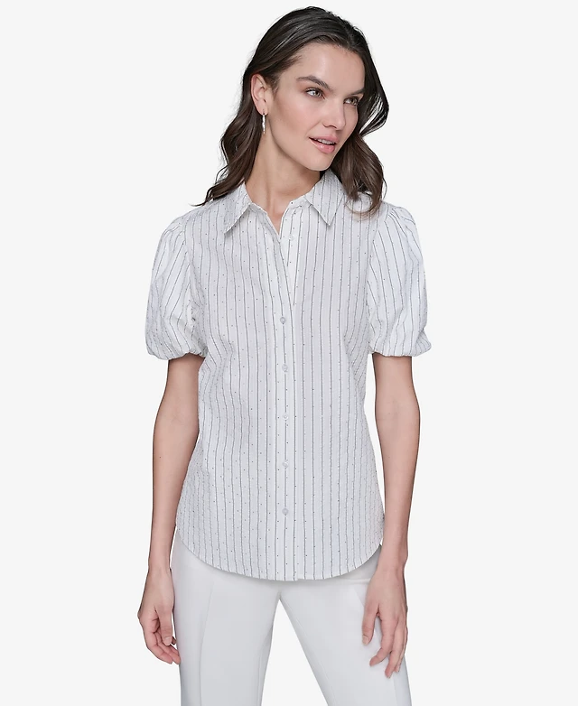 Karl Lagerfeld Paris Women's Striped Studded Button-Front Shirt