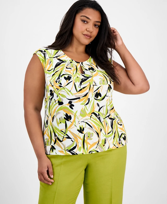 Kasper Plus Printed Keyhole-Neck Sleeveless Top