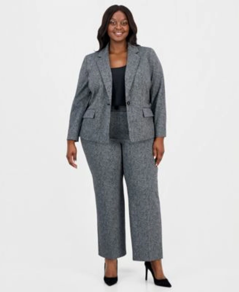 Kasper Plus Size Herringbone Single Button Blazer Pants