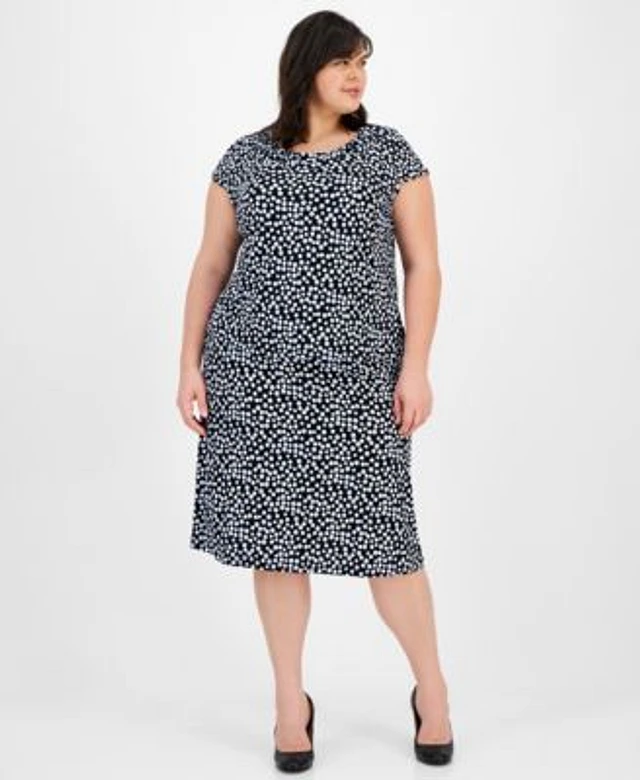 London Times Plus Size Polka-Dot Fit & Flare Dress