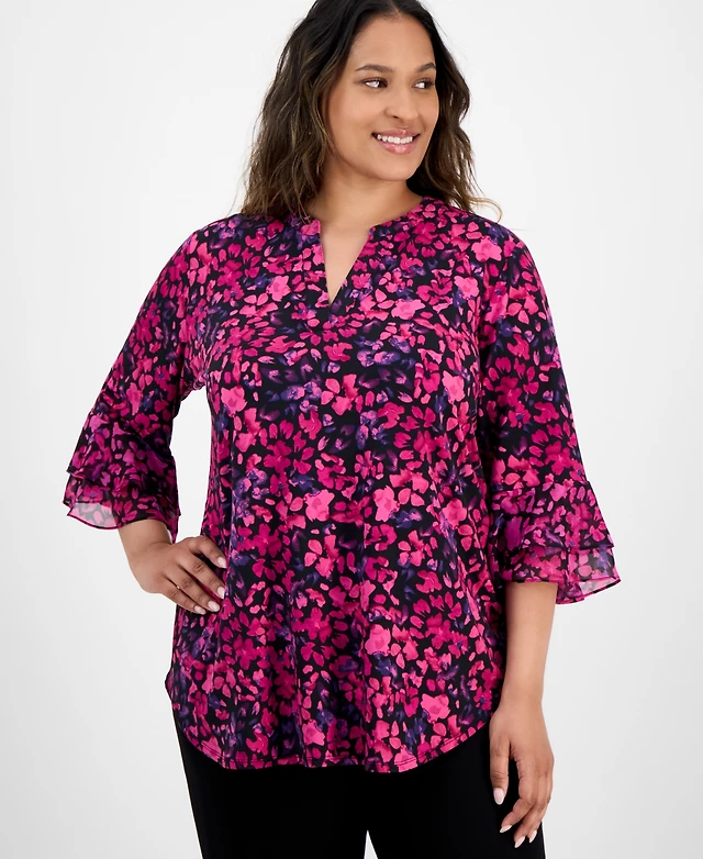 Kasper Plus Size Split-Neck Floral-Print Top