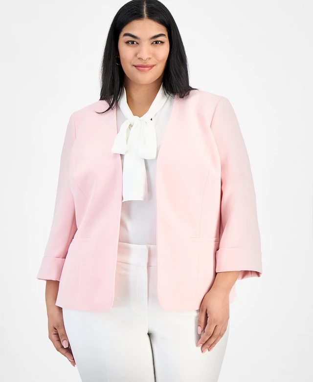 Kasper Plus Women's Cuffed-Sleeve Open-Front Blazer