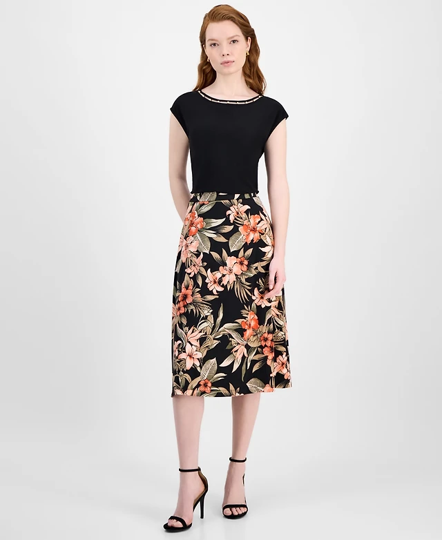 Kasper Women's Printed Elbow-Sleeve Midi Dress, Regular & Petite