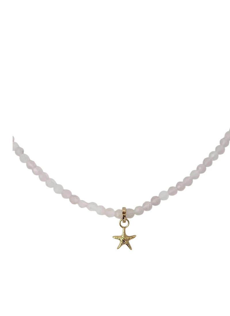 This elegant rose quartz choker, adorned with a delicate shell charm, measures 14" with a 2" extender for a perfect fit. Crafted from hypoallergenic 926 silver and finished with an 18k gold dip, it offers a refined accessory ideal for a casual yet sophisticated look. A timeless piece that enhances your style with subtle luxury.