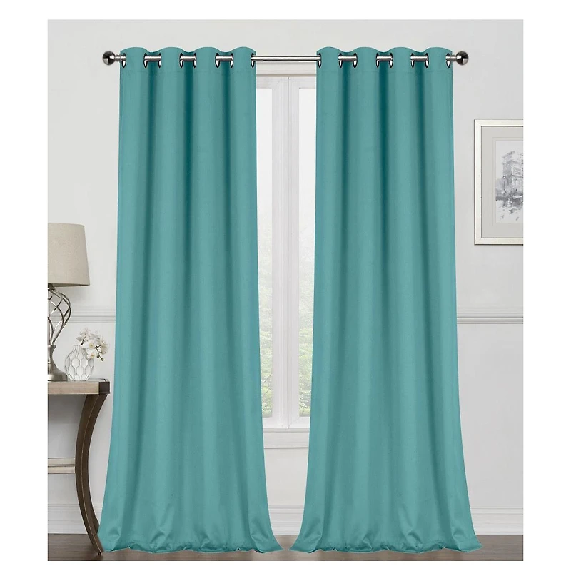 Kate Aurora Teal 2 Piece Grommet Top Blackout Curtain Panels For Extra Long Windows