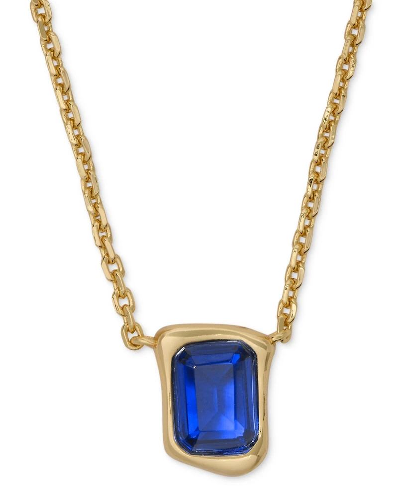 Elegant and luminous, this kate spade new york necklace showcases a sapphire-inspired stone crafted from cubic zirconia and glass. Set in gold-tone & silver-ton brass and secured with a lobster claw closure, it adds a refined sparkle to any ensemble.