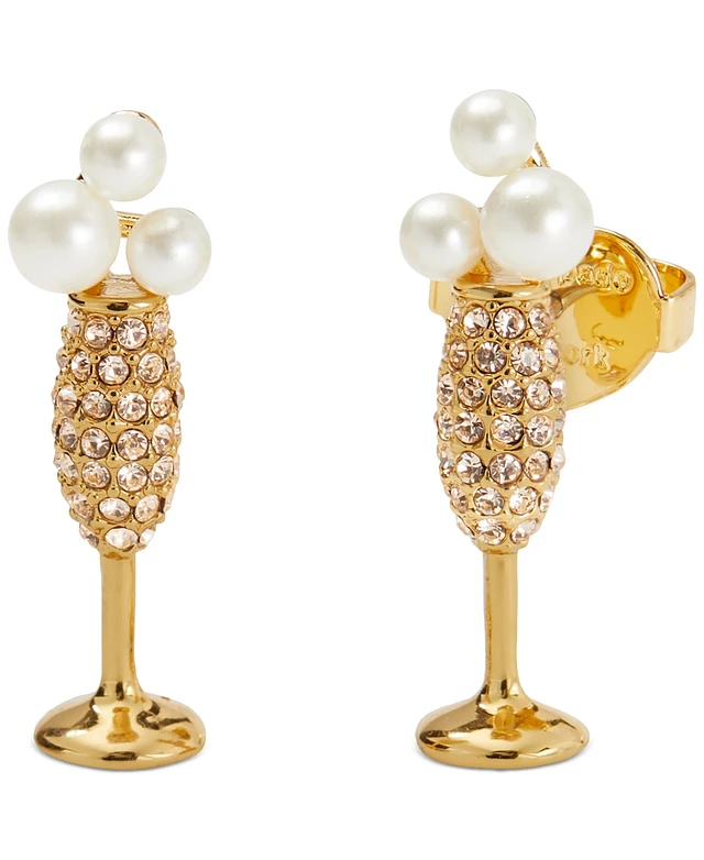 Kate Spade New York Gold-Tone Crystal & Imitation Pearl Champagne Statement Earrings