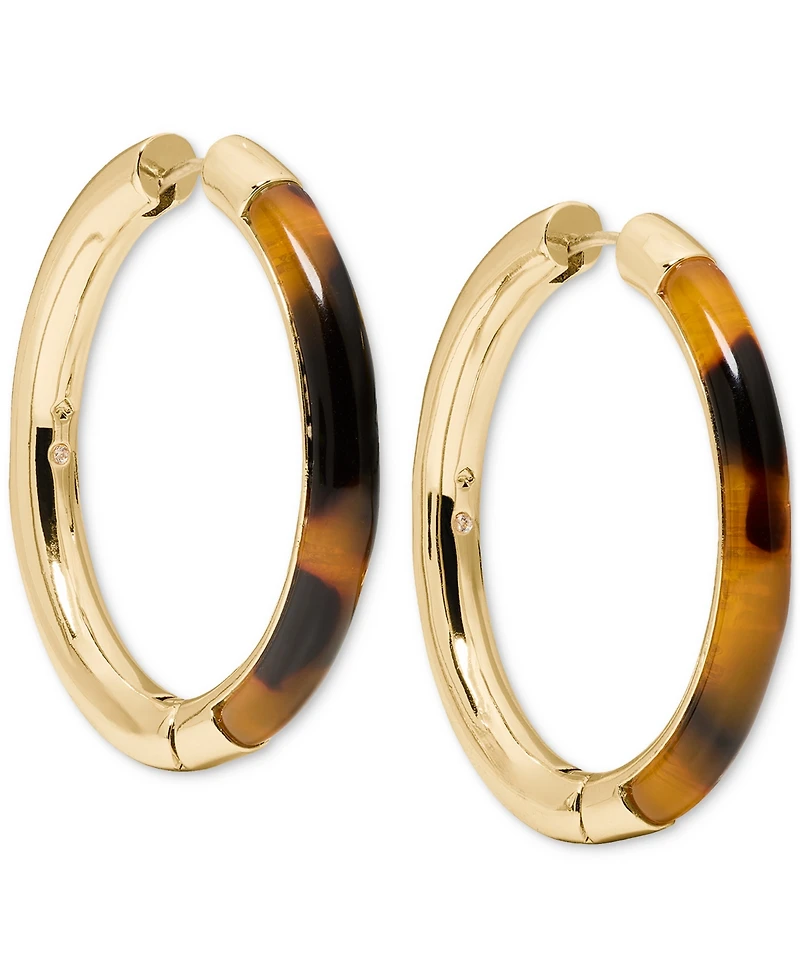 kate spade new york Gold-Tone Interlock Tortoise Medium Hoop Earrings, 1.34"