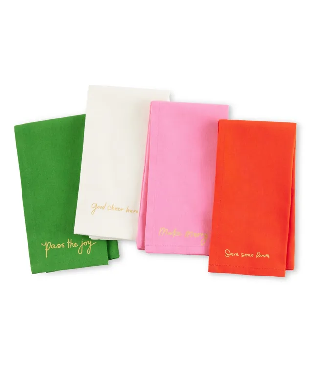 kate spade new york Holiday Cheers Cloth Napkins 4-Pack Set, with Metallic Holiday Quotes, 20" x 20"