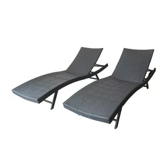 2 Pcs Patio Lounge Chair Chaise Adjustable Reclining Armrest