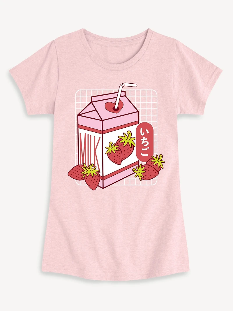 Kawaii Strawberry Milk Fitted Short Sleeve T-Shirt For Girls in San Juan, PR